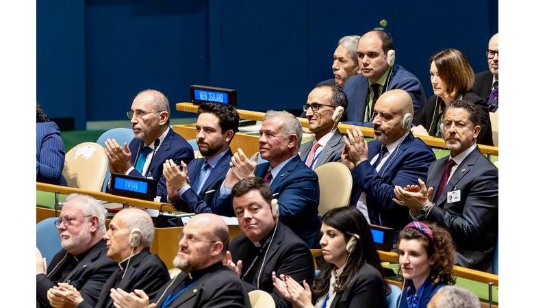 الملك وولي العهد يحضران أعمال المؤتمر الدولي حول التسوية السلمية وتنفيذ حل الدولتين في نيويورك