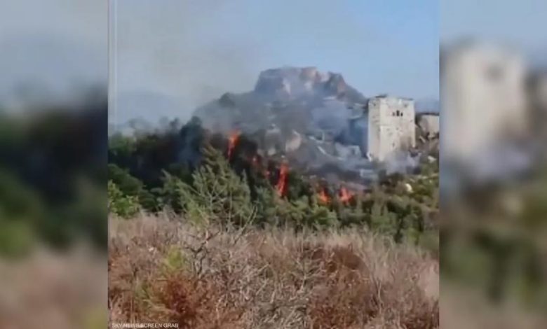 حريق في قلعة صلاح الدين الأثرية بريف اللاذقية