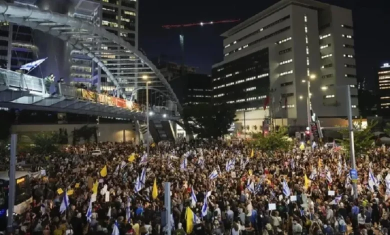 تجمع آلاف الإسرائيليين في “ميدان الرهائن” بتل أبيب لإحياء ذكرى السابع من أكتوبر