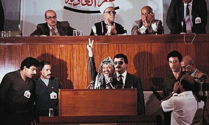 في 15 نوفمبر 1988، استضافت الجزائر الدورة التاسعة للمجلس الوطني الفلسطيني في قصر الأمم بالعاصمة، حيث أعلن الزعيم الفلسطيني الراحل ياسر عرفات قيام دولة فلسطين.