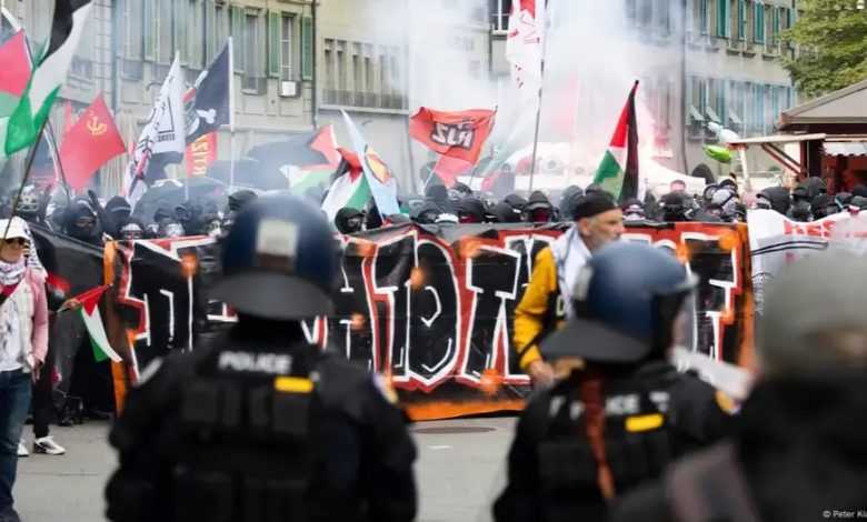 وذكرت وسائل الإعلام، أن اشتباكات عنيفة اندلعت خلال تظاهرة مؤيدة للفلسطينيين في العاصمة السويسرية برن نهاية هذا الأسبوع، أسفرت عن إصابة 18 شخصاً واثنين من المتظاهرين، وتسببت بأضرار جسيمة بالممتلكات، بحسب الشرطة السويسرية.