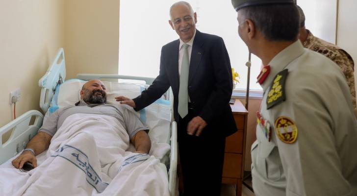 كما زار العيسوي المواطن وصفي نمر الفريحات، الذي نُقل للعلاج في الخدمات الطبية الملكية بتوجيهات ملكية سامية، بعد تعرضه لكسر في قدمه، ناقلاً لهما تمنيات جلالة الملك عبدالله الثاني وسمو الأمير الحسين بن عبدالله الثاني، ولي العهد، بموفور الصحة والعافية والشفاء العاجل.