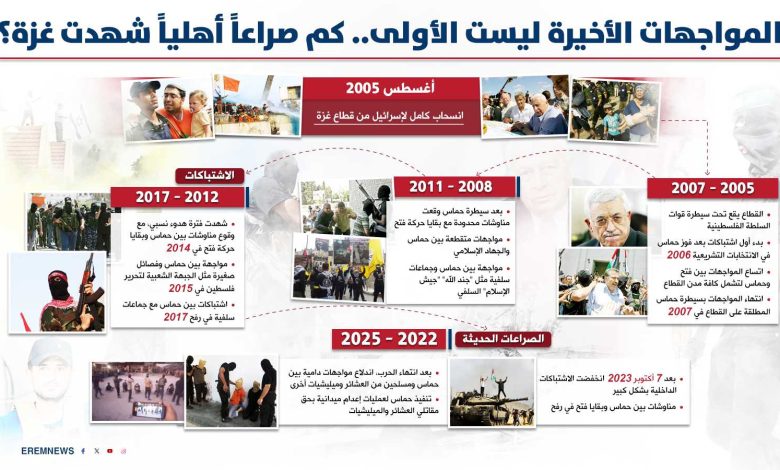 تُظهر المواجهات الأخيرة في قطاع غزة بين حركة حماس وعدد من الميليشيات والعشائر المسلّحة، حلقة جديدة في سلسلة صراعات داخلية لم تنقطع منذ سيطرة الحركة على القطاع عام 2007.