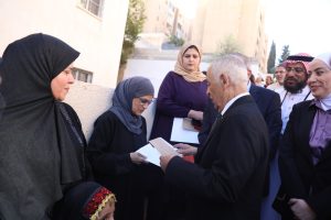 وسلّم رئيس الديوان الملكي الهاشمي يوسف حسن العيسوي، رئيس لجنة متابعة تنفيذ مبادرات جلالة الملك، مفاتيح الشقق السكنية وشهادات الانتفاع للأسر المستفيدة، بحضور وزير الأشغال العامة والإسكان المهندس ماهر أبو السمن، ووزيرة التنمية الاجتماعية وفاء بني مصطفى، ومحافظ العاصمة ياسر العدوان، ومدير عام مؤسسة الإسكان والتطوير الحضري جمانة العطيات، ومدير مكتب الأردن في هيئة الأعمال الخيرية العالمية – الإمارات العربية المتحدة رائد صبري أبو علفة.