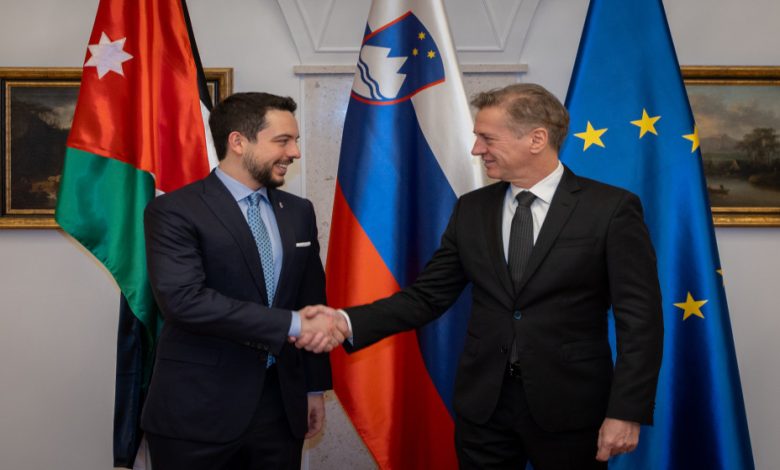 مندوبا عن جلالة الملك عبدﷲ الثاني، عقد سمو الأمير الحسين بن عبدﷲ الثاني ولي العهد، في العاصمة السلوفينية ليوبليانا، الأحد، لقاء مع رئيس الوزراء السلوفيني الدكتور روبرت غولوب، ركزا فيه على سبل تطوير التعاون بين البلدين الصديقين.
