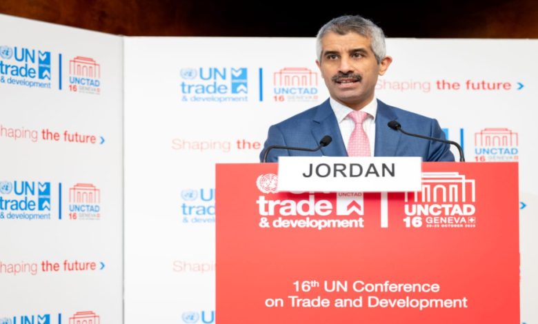وأكد أيضا التزام الأردن الكامل بدعم ولاية الأونكتاد كمركز تنسيق أممي للتجارة والتنمية، قائلاً إن “التحول الاقتصادي العالمي يجب أن يُبنى على التعاون والتضامن”، داعياً إلى تعزيز التجارة العادلة ونقل التكنولوجيا ودعم الدول النامية في بناء قدراتها المستدامة.