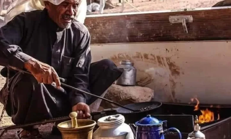 طقوس إعداد القهوة البدوية لا تقلّ أهمية عن طعمها، إذ يتم تحميص البن أمام الضيوف كدليل على الصدق، وطرق المهباش لإعلان بدء الإعداد، وسكب الفنجان الأول الذي يُعرف بـ”فنجان الهيف” ويشربه المضيف للتأكيد على صفاء القهوة. كما تُقدَّم القهوة باليد اليمنى للضيف الأكبر شأناً، ولا يُملأ الفنجان بالكامل احتراماً للعادات.