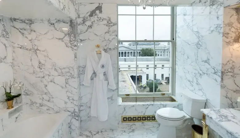 هذا الحمام المجدد ليس جزءاً من جناح الرئيس الخاص، بل جناح قريب يتسع للضيوف، بينهم إيلون ماسك عندما كان يرأس لجنة كفاءة الحكومة أو “دوج” في الربيع.